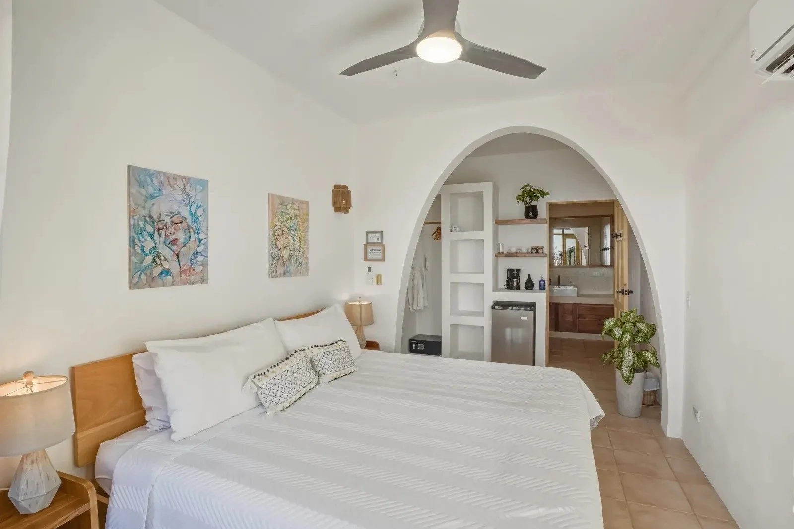 King Bed in a Private King Room, single occupancy, ensuite bathroom, partial ocean view, mini fridge